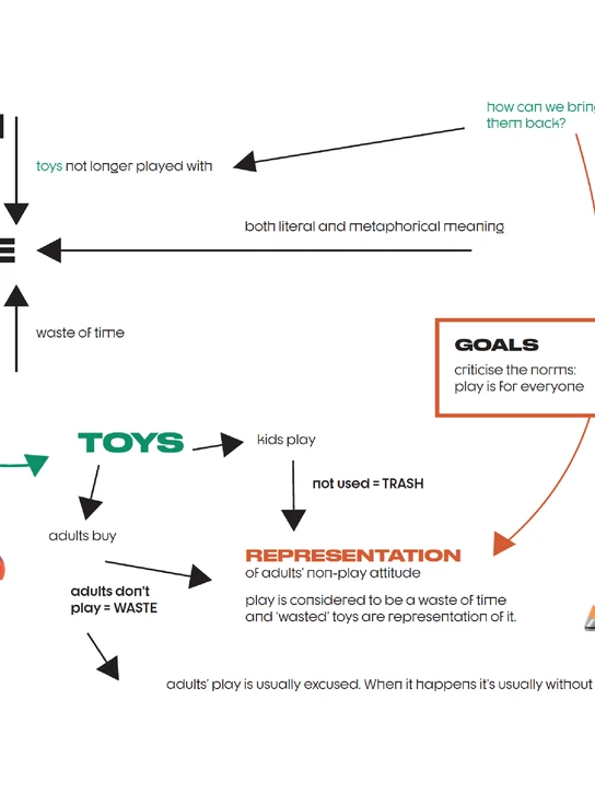 Starting with trash culture and the idea of how things can be re-used and re-purposed this project evolved into deeper exploration of what waste is and what do we waste other than physical objects. It challenges the assumption that adults play is considered a waste of time by using found and ‘useless’ objects. Alongside the sarcastic tone of voice, the objects has been changed and altered in order to be critical.