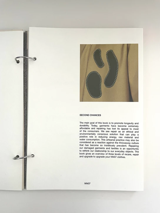 Having as a starting point the increase of garment’s longevity during the use phase, the project focused on how repair and which repair strategies fit the values and aesthetics of the brand while considering the needs of the main consumer of NN07. The aim is to inspire the customer to have a better consumption culture, while exploring how NN07 can facilitate change towards responsible consumption.