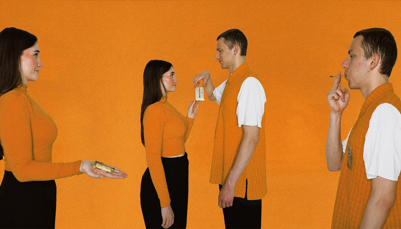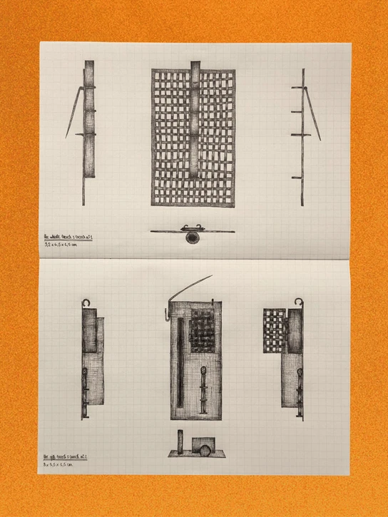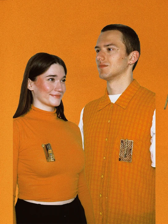 I designed two brass brooches to be worn by each of the people of the date, whose purpose is to stand out in a crowd. Each inspired by the phenomenon of animal courtship, one brooch is a whistle like a singing bird; and the other brooch is a gift, like the nuptial gift of daggerflies.