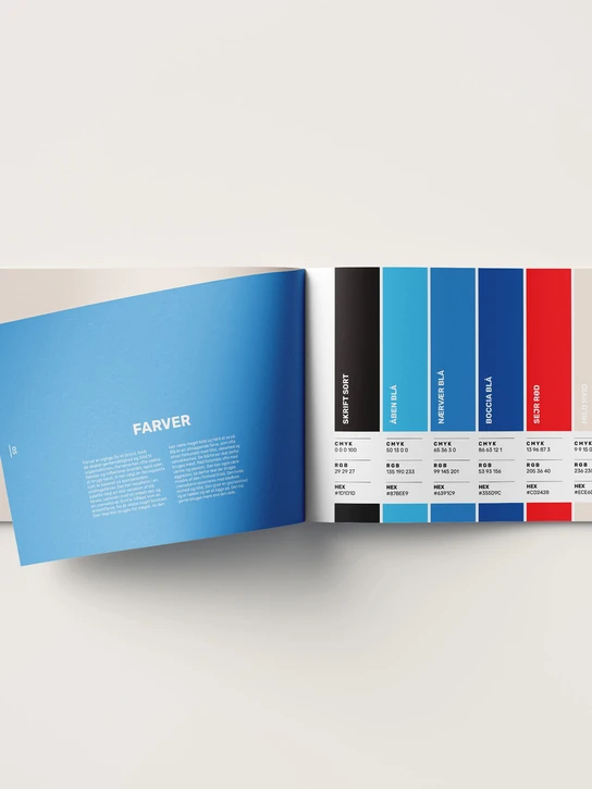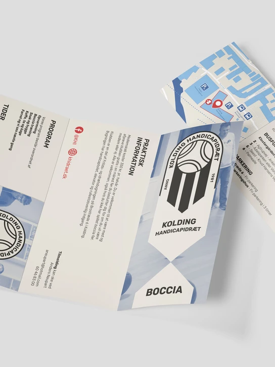 The folder gives you all the information that you need about the Kolding Boccia club and it also features a rippable part that creates a little pocket booklet with all the essential information for finding the club. The brand booklet contains all the graphic elements and how they are to be used. It also recommends how to tackle public representation and how to make new members feel welcome.