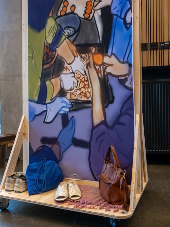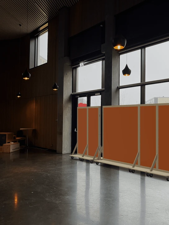 As our final design solution we have designed mobile room dividers, consisting of either textile art banners or mirrors. The banners have a practical purpose of covering the windows, creating new dynamic spaces for events, for the women to put their outdoor clothing or for them to be able to see themselves during the dance classes. At the same time, the banners have a feeling-centered purpose of representing the women as they are: Strong, positive, and inspiring to the overall community of Bispehaven.