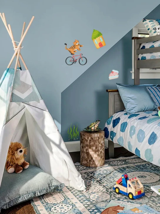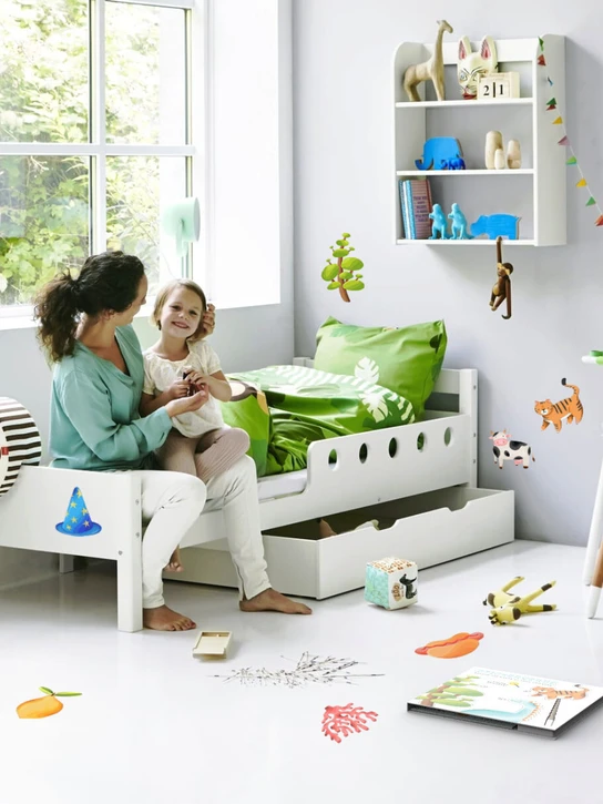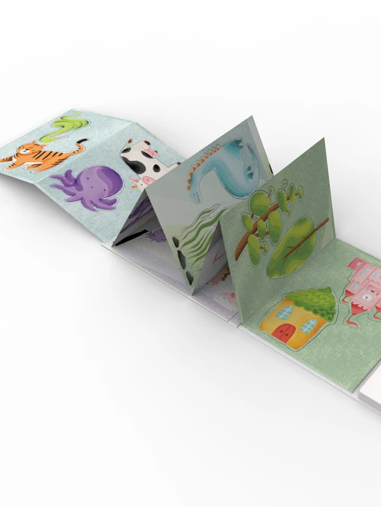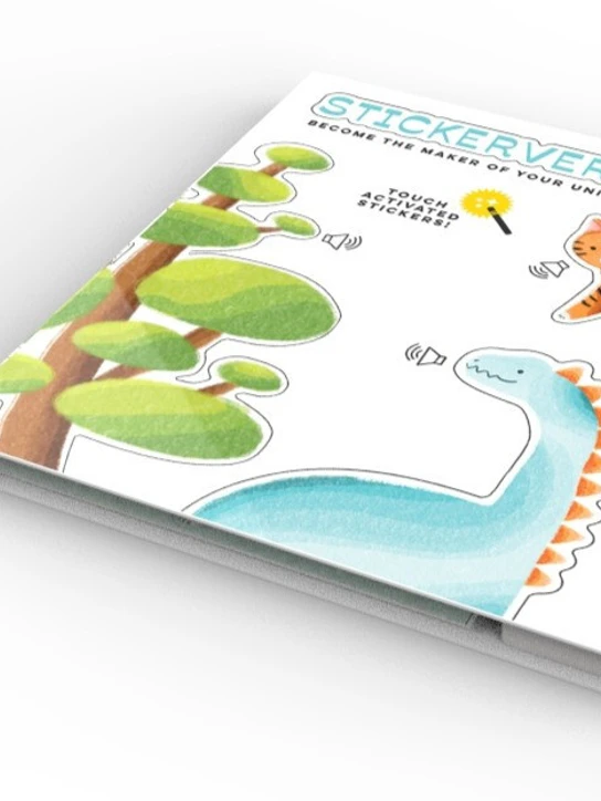 This book consists of 30 touch-activated vinyl sound stickers which act as catalyzers to facilitate your child’s play experience. These stickers can be placed anywhere in the home! On the walls, on the floors, on tables, and on chairs. The possibilities are endless! And when playtime is over, the stickers can be tucked away and used again and again to create more Stickerverses.