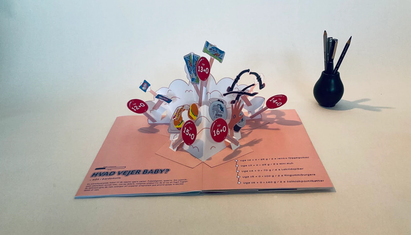 I designed a sample of a pop up-/interactive workbook for first-time parents, to help them prepare mentally for their new roles as parents. It is not gendered or tied to any specific family construction, but is made for individual parents to use, and to initiate insightful conversations with the user’s partner, friends, family etc.