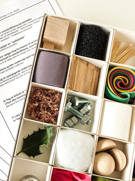 The student is an 8-year-old boy at Marielund School in Kolding, a special school for vulnerable children who need a particularly welcoming learning environment. Their conversation has been followed and quoted because what initiated it is a new tool developed by designers from Kolding School of Design’s Laboratory for Social Inclusion in collaboration with the school's employees. Among other things the tool consists of a box containing twenty items - a holly leaf, a shiny ball, something soft, something hard, for example – and a playing board. When asked by his pedagogue to take one of the things that would best describe his thoughts and feelings, the student chose the sandpaper. "The sandpaper," he said, "because it's very rough ... and you can grind with the sand." The student later said that without the sandpaper he would not have talked about his feelings at all.