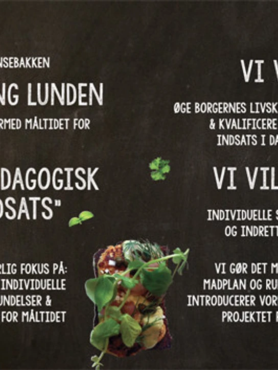 Det vil teamet fra Lab kigge nærmere på i projektet. De vil bl.a. lave undersøgelser af funktioner, aktiviteter, sociale forhold og menneskelige relationer på bostedet, for at finde frem til de interaktioner, der sker før, under og efter, at man spiser. Målet er at designe nye løsninger til glæde for både beboere og medarbejdere på Skansebakken. Projektet benytter en holistisk tilgang til køkkenfortællinger og madoplevelsen, og ønsket er også at finde den mening og sammenhæng, der potentielt findes mellem de forskellige køkkener på Skansebakken.