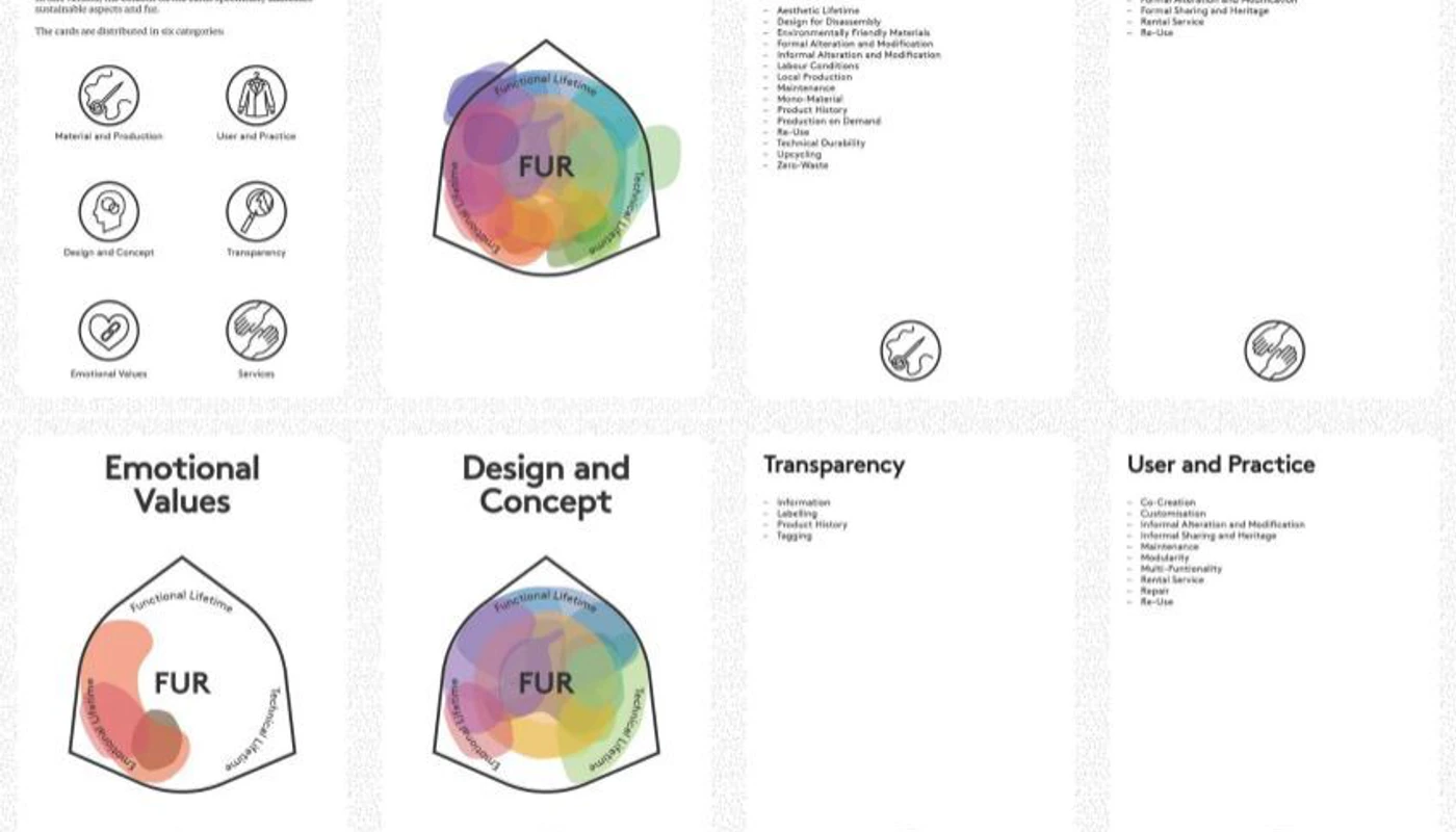 Designskolen Koldings forskningsafdeling har i samarbejde med LAB for Bæredygtighed udviklet en serie tilgangskort, der skal støtte Kopenhagen Furs designere og buntmagere i deres designproces, så de kan arbejde med produkternes levetid. For når ting holder længere, betyder det i sidste ende en ressource-besparelse.