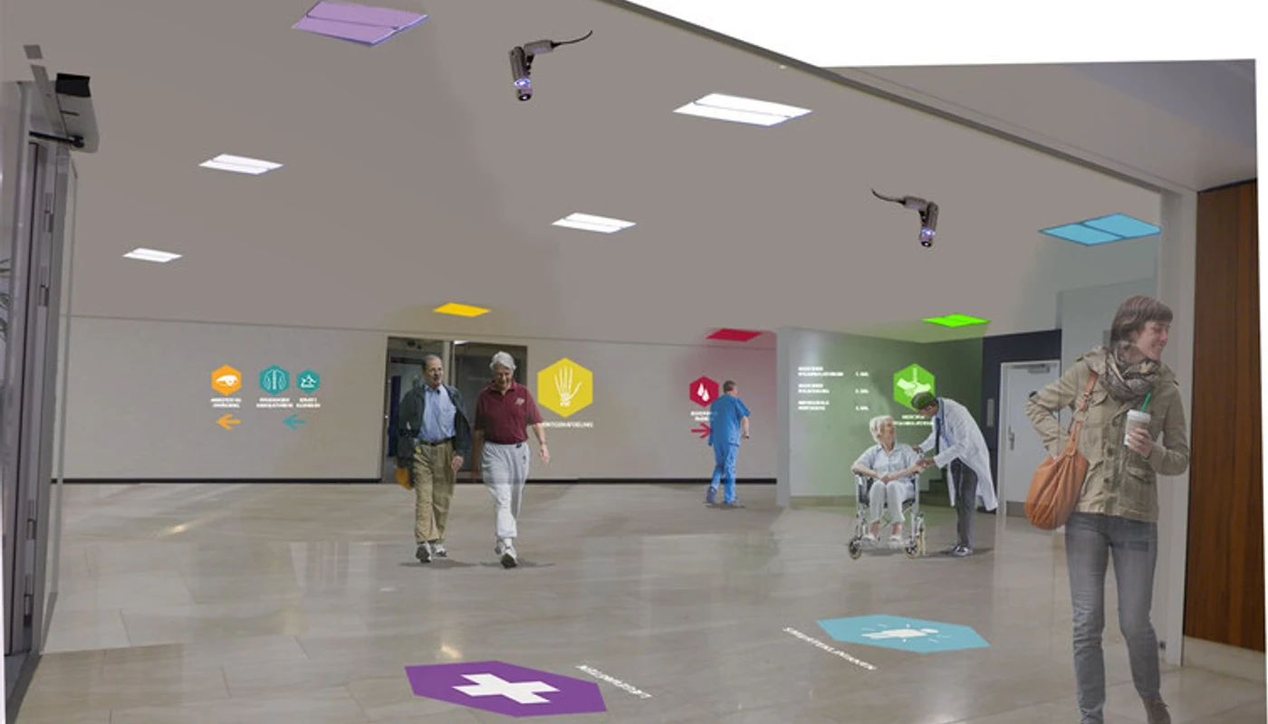Teamet valgte primært at arbejde med lys, farver og piktogrammer - ikke mindst fordi det er billigt og effektivt, men også fordi, de er hurtige at ændre. Det er et af de vilkår, danske sygehuse arbejder med i dag: Der sker løbende forandringer i behandlingerne, og det kræver, at sygehusbygningerne også hurtigt kan ændres og indrettes efter nye krav.