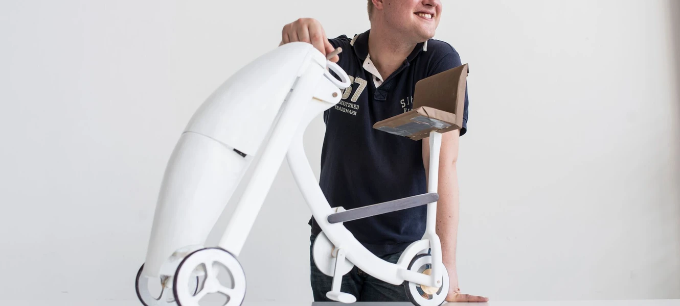 In the development of the prototype numerous considerations and user insights have been brought into play, knowledge that the design student has acquired over several time periods. He has conducted interviews with the Danish technical aids centre IBOS (Institute for the Blind and Visually Impaired), held repeated, solid sparring sessions with the Danish Technological Institute Odense, and finally tested the prototype vehicle at Synscenter Refsnæs (the National Centre for Visually Impaired Children and Youth in Denmark), where a group of blind citizens volunteered their physical abilities and their nerves to test four models in the centre’s gymnasium.