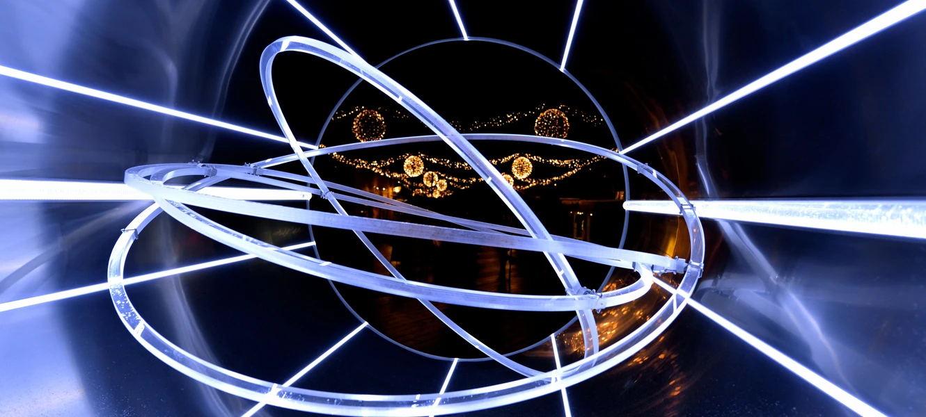 Four futuristic rings made from polished steel pipes that will hypnotise you with their fluorescent lights. Kolding School of Design exhibits the container installation Ciclo at this year's Kolding Light Festival from 11-13 December.