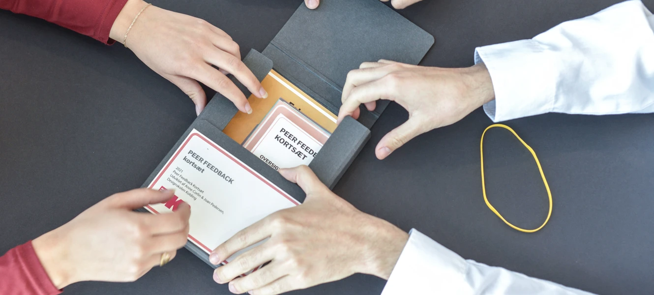 A growing need to train students to be more reflective and minimize insecurity in the learning environment led Joan Pedersen, Teaching Assistant Professor and Anne Corlin, Ph.D. to develop a peer feedback tool focussing on making learning a common goal among design students. Specifically: a box with 16 cards that can be used as a common method and work tool for the students to support and use each other constructively throughout their studies.