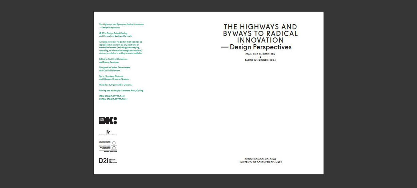 Several features link design and innovation: They share a strong focus in terms of novelty and the creative processes associated with imagining and creating opportunities for the future. In the anthology Highways & Byways to Radical Innovation – Design Perspectives a number of international researchers explore current issues in this strong and lasting nexus between innovation and design. Contributors identify and reflect on opportunities, pitfalls, paradoxes, methods and models, when working with far-reaching change and radical innovation and the contribution of design.