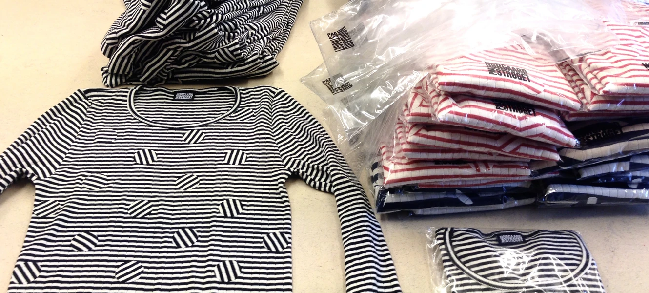 With her idea to make hand-applicated spots on a selection of Mads Nørgaard’s designs, design student Mille Sviatchenko has changed the look of the classic striped blouse and created an entirely different design.