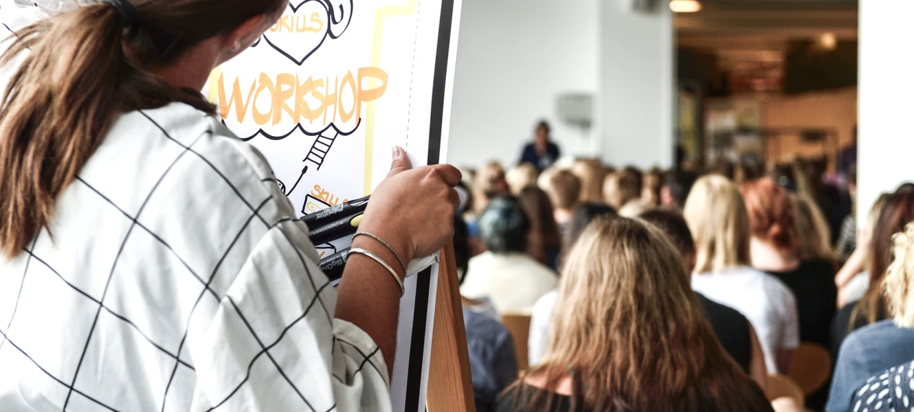 While Designer Marieke Bülow made a live visualisation of Rector’s speech and fittingly combined talent and craftsmanship, Rector went on to talk about talent and the meaning of the workshops: