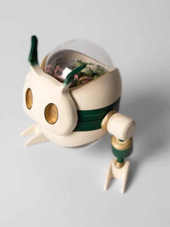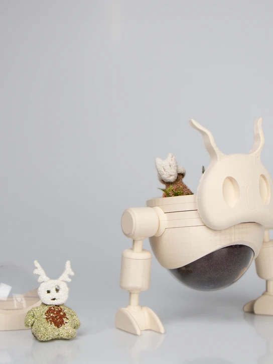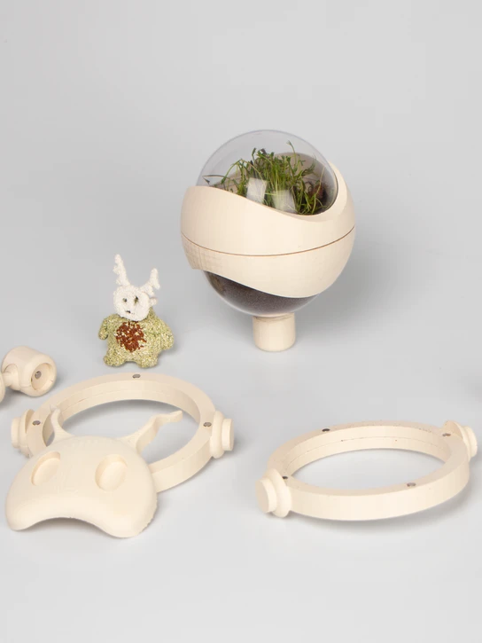 “Kids can plant the ALMA toys after playing with them. Its complement is ALBA, a customizable building system to care for and grow plants, and to create terrariums. ALBA are the guardians of the plants, while ALMA is the soul that grows into the soil.”