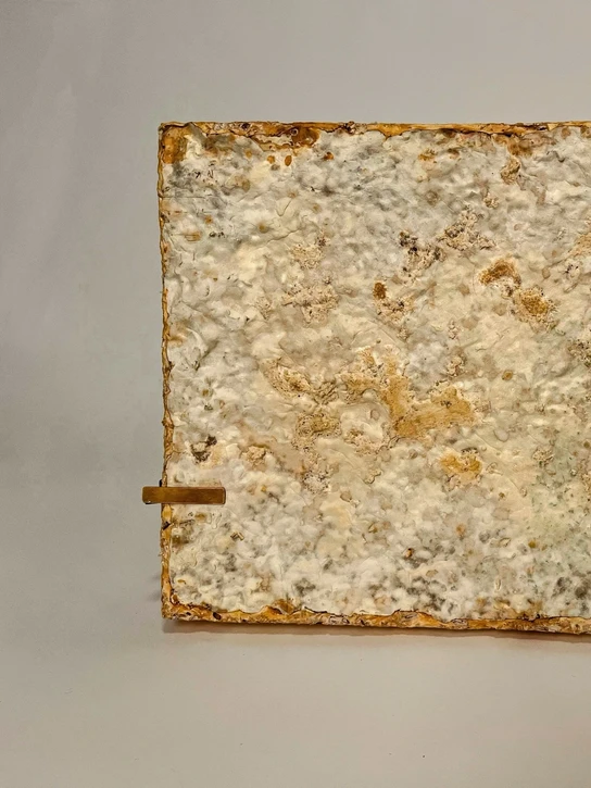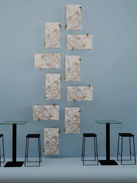 In collaboration with Mycela, the goal is to bring mycelium composites closer to production. As awareness of industrial waste grows, biodegradable materials like mycelium are being explored to reduce environmental impact. The main challenge addressed is the difficulty of mounting mycelium panels due to their porous nature. However, the designer’s innovative approach results in a sustainable and effective acoustic solution as well as a design that enhances durability.