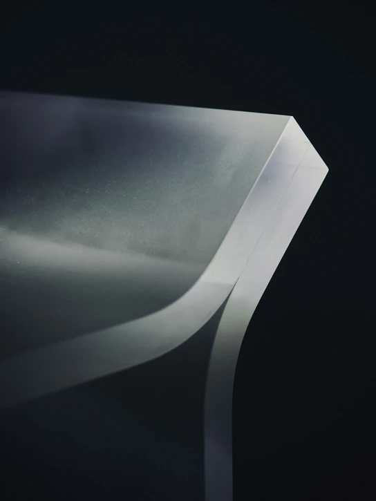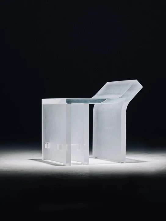 That synergy is present in ‘Malik’, a furniture piece that Ida Lønne has manipulated into being by applying an aesthetic approach to an industrial material, specifically a cast acrylic sheet. Inspired by the softness and hardness of water, she has created a sculptural piece of seating furniture that balances between design and art.