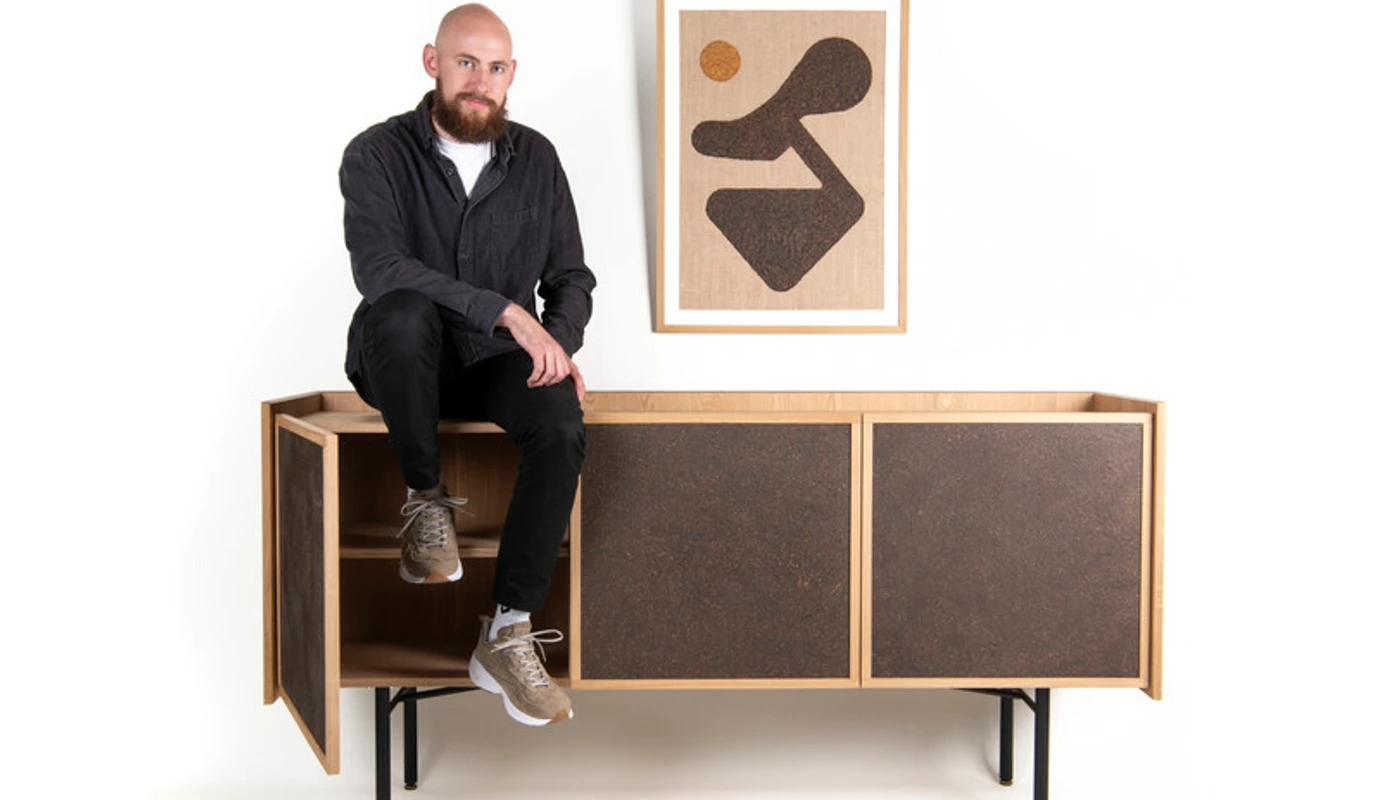 Thomas Rahbek addresses that question in his project by using a new, sustainable biocomposite for a familiar product and an abstract work of art. The new material consists of coffee grounds, pulverized orange peel and gelatine, and Thomas Rahbek manifests its potentials in such disparate products as a sideboard and an abstract composition on a canvas.