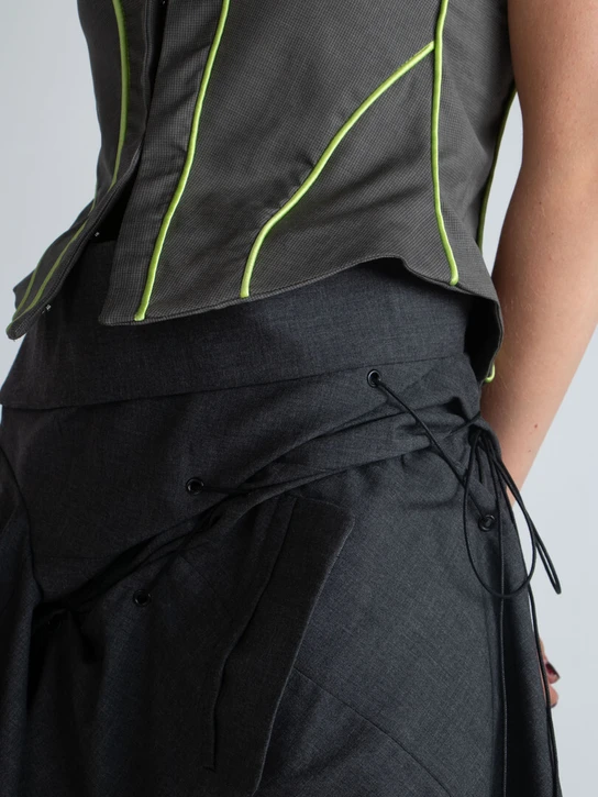 That is the question the fashion designer asks in her project, which is technically focused on tight lacing as a way of shaping clothes. Conceptually, the project explores women's liberation and women's oppression through an investigation of symbolically limiting and liberating clothing.