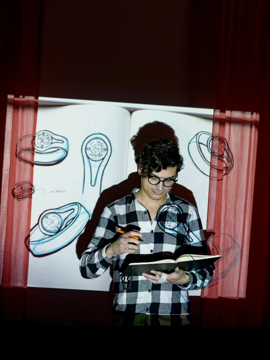 The health services tend to perceive the human body as an object, and in certain instances many of the layers of our humanity are being ignored. That opens the door to a host of negative experiences with our body. How can hospitals help us develop a positive relationship to ourselves? Daniel Salazar invites us to understand the body from a playful perspective, and through digital experiences he puts us in touch with our inner functions. A sensor registers our heartbeat and enables playful interaction with music.