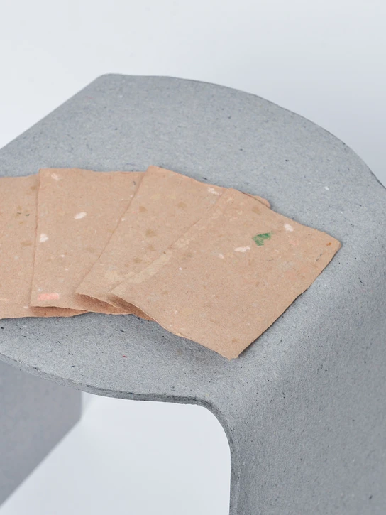 Denmark is Europe's largest producer of household waste per capita. The designer investigates whether it is feasible to manufacture furniture from pizza trays, flour bags and other food packaging that would otherwise have to be incinerated. He experiments with the fibres in the material, which are malleable while wet and subsequently solidify into a hard material. The objective of the project is to both develop and design a piece of furniture from this new material.