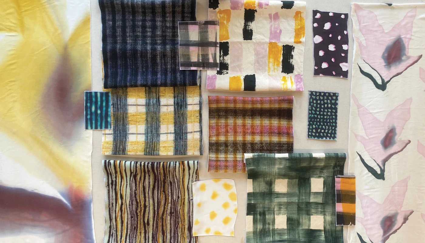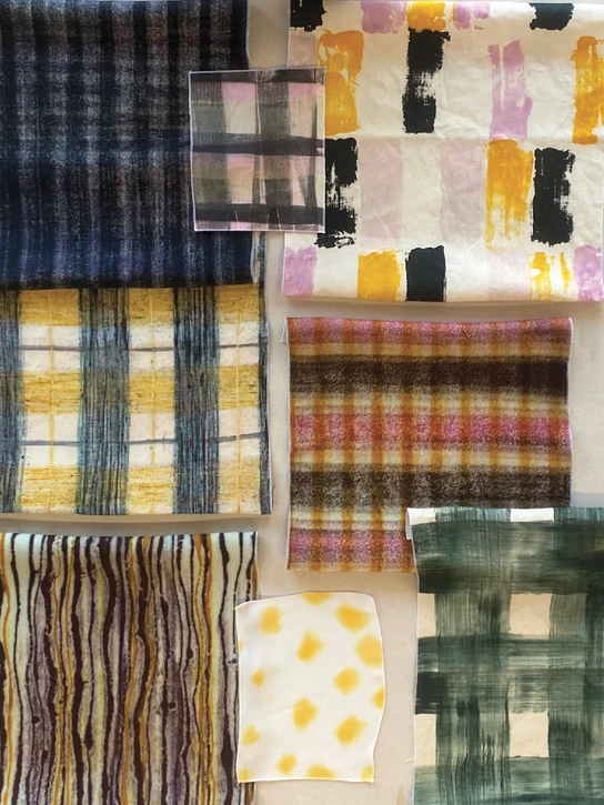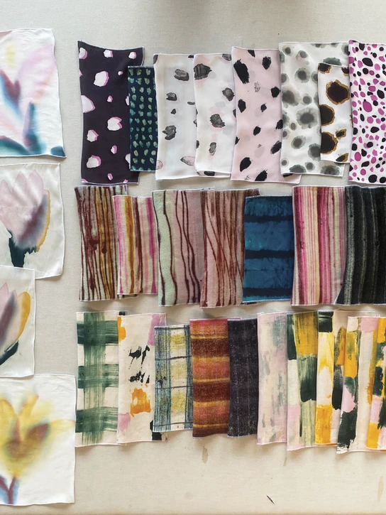Series of unique handprinted quality textiles for luxury clothing on natural fibres exploring, whether the presence of the designer’s hand can contribute to prolonging the lifespan of textiles. The designer investigated, how the work of the hand and the presence as a designer are reflected as aesthetic qualities in dialogue with the material.