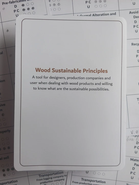 The project explores how the material wood can be used in a sustainable way, from the designer and producers’ point of view. The outcome is a set of Principles, based on the research made, which is a tool for industrial designers, production companies and users to know what the sustainable possibilities are when dealing with solid wood.
