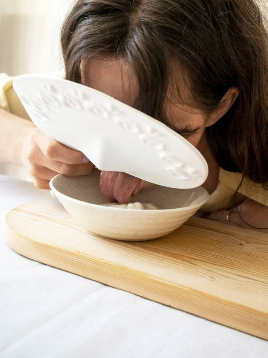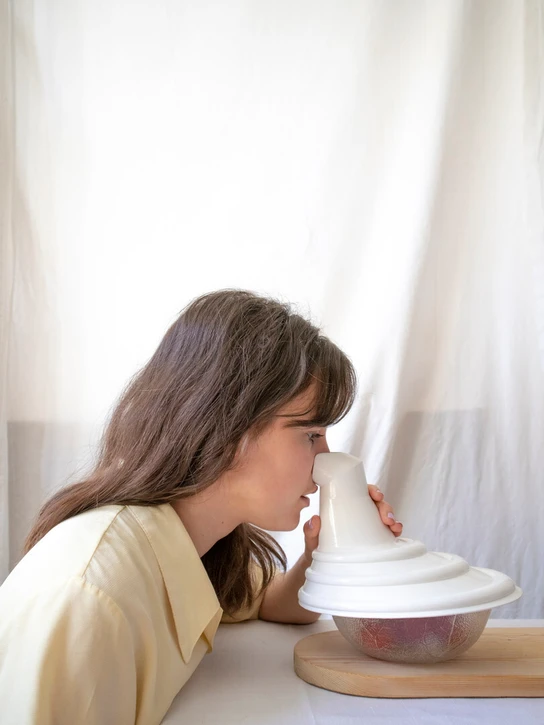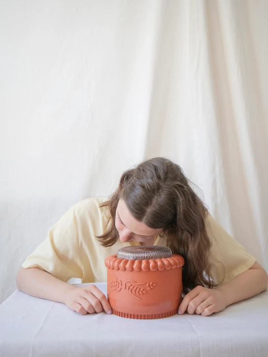 Her knowledge of traditional crafts inspired Nele to create this collection for exploring the sustainability of food and challenge overproduction and waste. The box is made of sustainable materials in a collaboration with Tempa Håndværk (Tempa Craft) and Re-Art meets Kulturerbe (Re-Art meets Cultural Heritage).