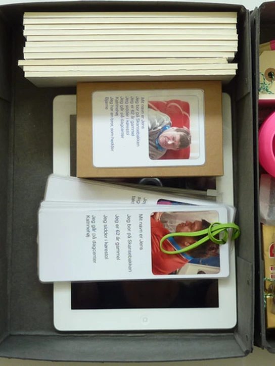 - Et kommunikationsværktøj til Ipad til borgerne på Skansebakken. Værktøjet gør det muligt for borgerne at præsentere og fortælle om sig selv. Borgerne har ikke noget sprog og kan derfor ikke præsentere sig på ”normal” vis. Ipad’en kan borgerne altid have med sig og de kan således starte en interaktion – og en relation – til hver en tid.