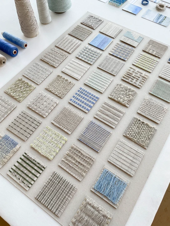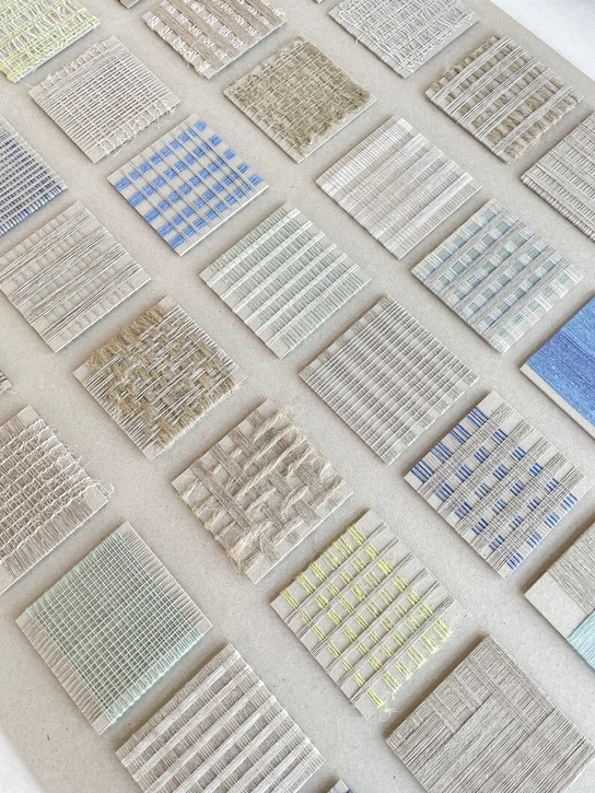 The project consists of a growing collection of samples made by weaving and winding the flax yarn and fiber around cards. The samples explore the beauty and the qualities that flax has. Representing the perspectives; biological, industrial, the human-made, a symbol of light.