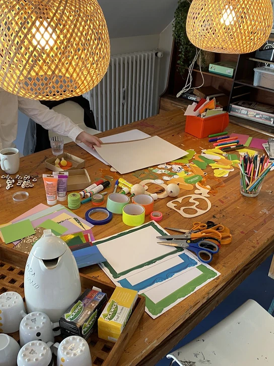 We created a messy workshop where our aim was to embrace imperfection through a fun activity and allow kids to create something collectively.We got inspired by a type of magazine called Fanzine, which is usually produced by amateurs as a form of entertainment. It is a helpful tool to share things with people who have the same interest. The most important thing about it is that it is so easy to make and everyone can make it!