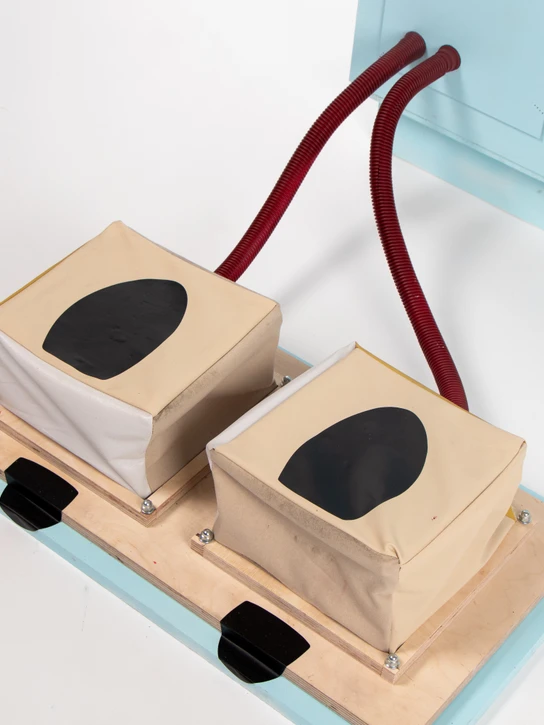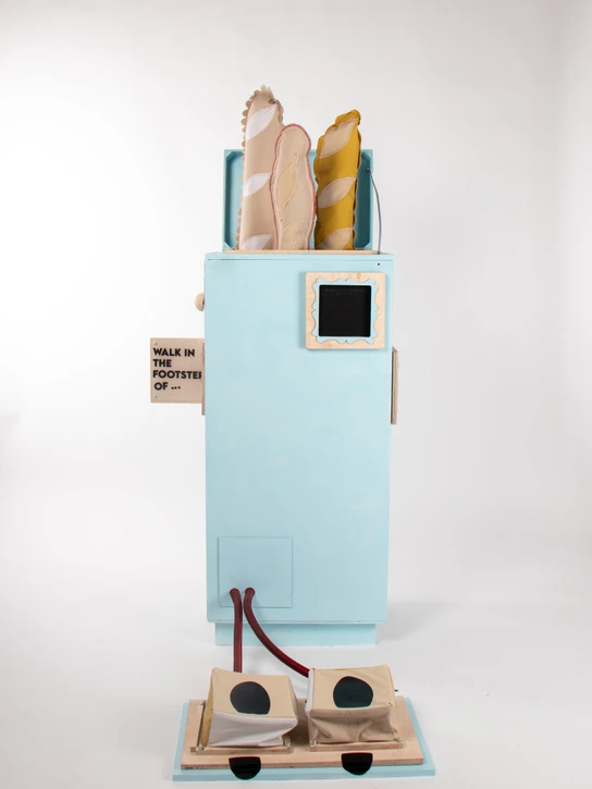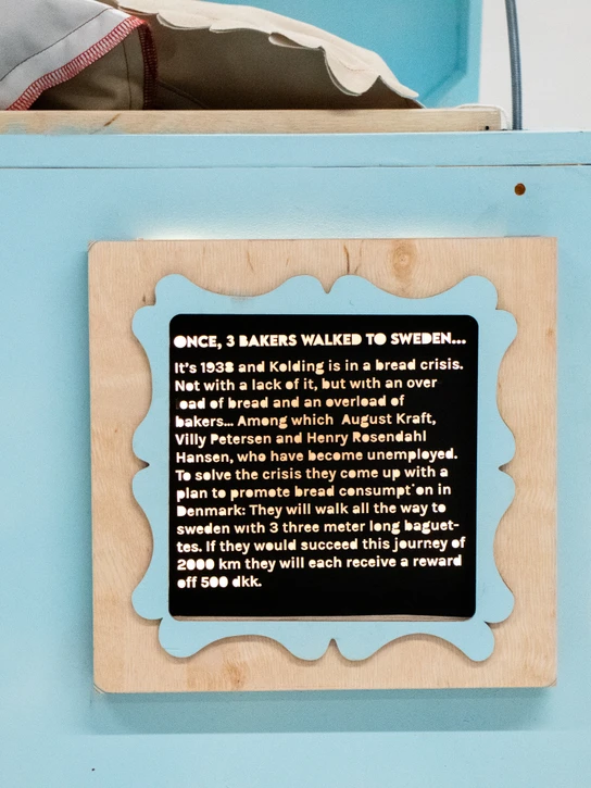 Walk in the footsteps to inflate the temporary statue, switch on the lights to read the text and bring the story of the three bakers that walked to Sweden to life.