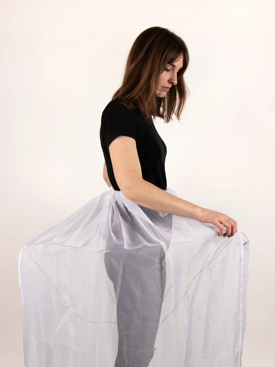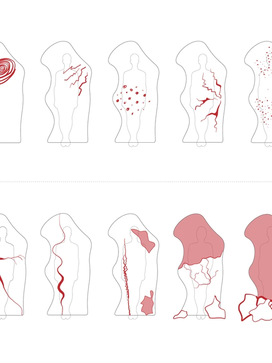 Our personal space is part of our identity and therefore highly unique. These boundaries we build shape not only our current relationships but also how we build connections around us. We were especially interested in the dialogue between two people’s personal spaces when approaching each other that basically results in a constant negotiation of our boundaries. Taking into consideration our research and our own experiences, we concluded that gender plays an important role in the perception of personal space, as does body height and cultural background. We asked ourselves: how much of our space are we willing to give up for someone else? And who does our body belong to if we get invaded without our consent? These intrusions happen not only through touch, but also through vision, sound, and movement. It can cause traumatic psychological and physical consequences. While physical consequences like theft, harassment, or rape leave obvious visible marks on the body, psychological consequences like anxiety, distress, and panic, stay invisible, leaving no proof, and making it harder to be taken seriously.