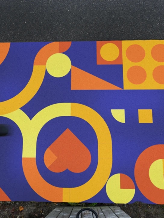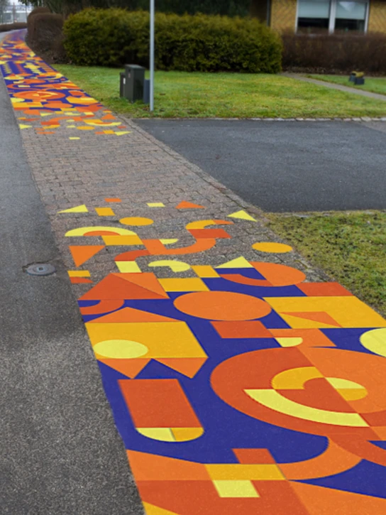 Our style is universally understood, modular, and beautiful. With a mix of geometric elements, we are able to offer you more than 15 different walking games, recognizable elements such as flags, animals, and vehicles as well as mesmerizing abstract patterns. With careful consideration of the placement, we were able to create a waking path that flows with the surroundings and adapts to its environment.