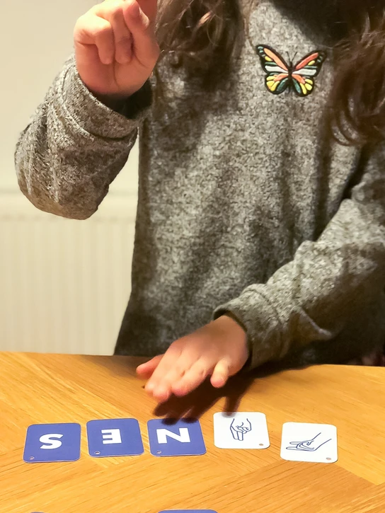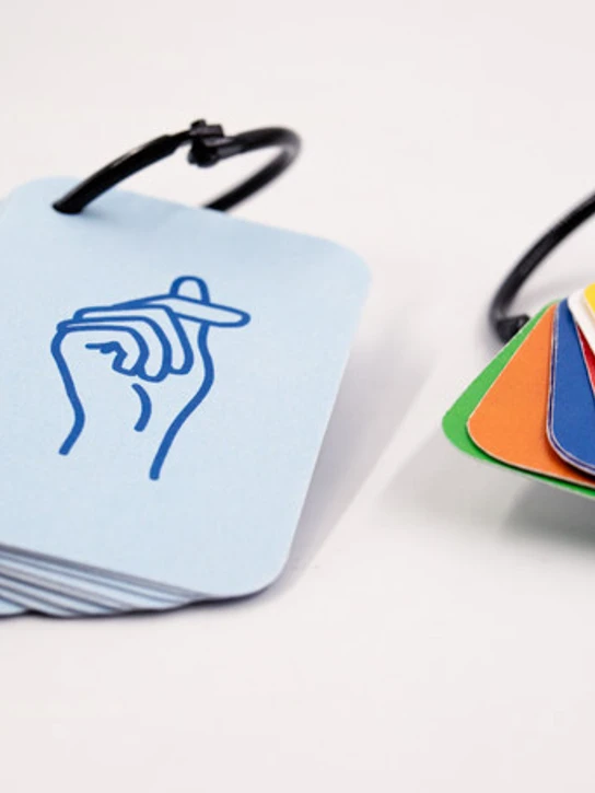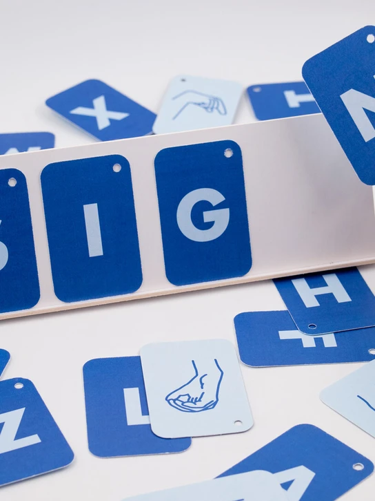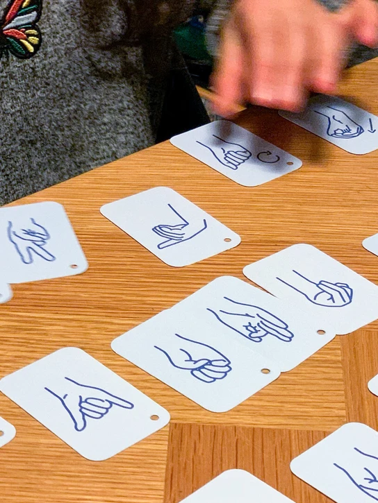 Sign focuses on parents learning sign language together with their kids through a playful approach. The end product is a range of cards that visually describe how to sign different letters and words. The parent and child play together by one using the cards (single or combined) and signing, and the other one guessing the signs. A simple memory training technique that keeps children engaged.