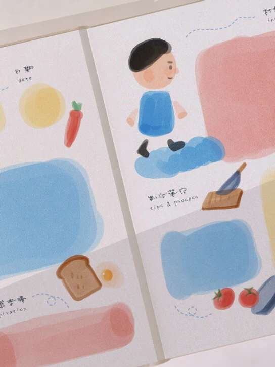 - A book for kids to record their creative idea, creating process, and their own recipes