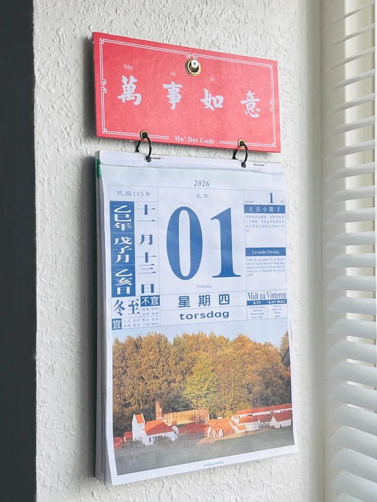 "This design proposal uses a calendar format to reinterpret the visual language of the traditional Taiwanese lunar calendar, integrating elements of Danish culture to create a cross-cultural way of marking time. In collaboration with the Taipei Representative Office in Denmark, the project invites Taiwanese residents in Denmark to co-create the calendar—shaping its format, content, and featured holidays. The calendar aims to serve as a platform for community connection, helping Taiwanese immigrants maintain a link to their cultural roots while also offering an entry point to better understand and engage with Danish traditions.”