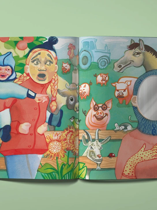 The “Turn, point, mime” book is a concept for a picture-based book for 2-3 years old children.