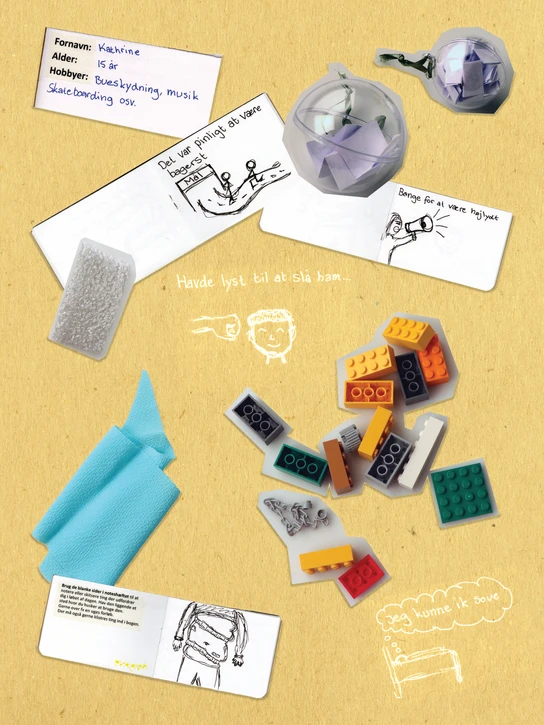The study explores the design and use of play probes, and touches on the overall findings from testing the play probes with over 70 15- to 17-year old pupils. The findings separated into two areas: how to make a play probe and what insights the participants shared. The first area depicts how the young people still participated in the study to a high degree despite the probes being voluntary.