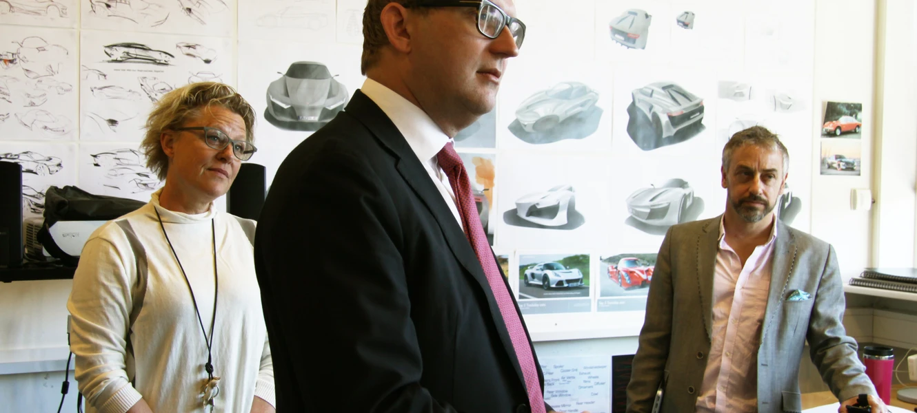 Rektor Elsebeth Gerner Nielsen var i dag vært for en sand tour de force i skolens mange projekter og samarbejder med erhvervslivet, da Troels Lund Poulsen var på besøg i Kolding. Især skolens samarbejde med med Tim Hansen for House of Composites, med hvem tre studerende lige nu designer en sportsvogn, fangede ministerens øre. House of Composites har i mere end 10 år fremstillet kulfiberkomponenter til både Le Mans og Formel 1 biler. Det har givet manden bag virksomheden, Tim Hansen, lyst til at designe en sportsvogn. Det er tre herrer fra industrielt design, der lige nu udvikler på det, der siden skal blive til Agile SC122 – en rap lille sag med en 3,5 liters V6-motor fra en Toyota og effekt på op imod 450 hestekræfter. Uddannelseschef og leder af industrielt design, Peter Barker, gav ministeren indblik i bilprojektet og viste frem af et udvalg af skitser og computertegnede modeller.