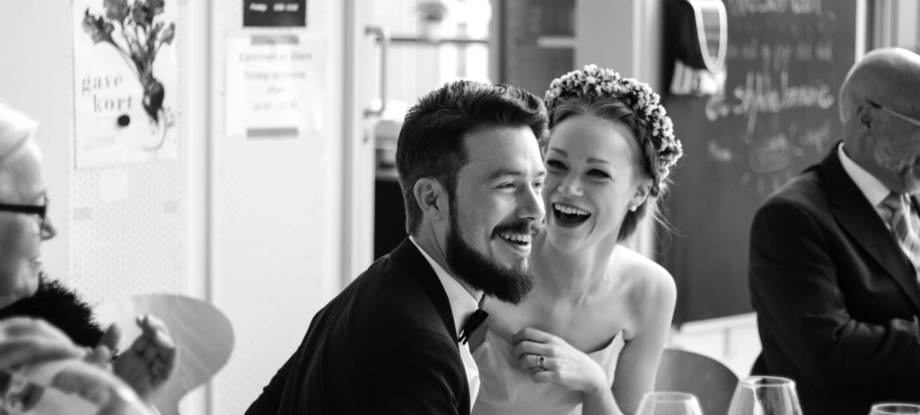 De ender til den samme fest, snakker hele aftenen og resten er historie - indtil de i september gav hinanden deres ja under et espalier af hvide roser og efeu i Designskolens auditorium: