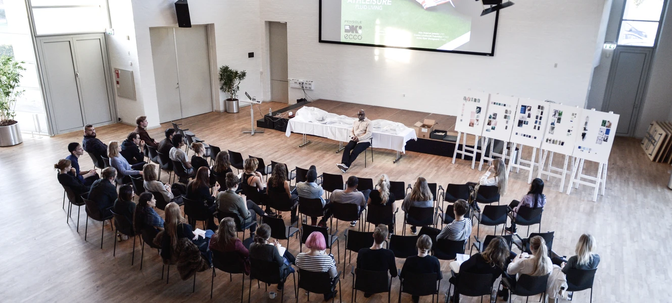 Devisen er D’Wayne Edwards – manden der igennem 5 uger har vejledt og guidet studerende i at designe fodtøj. Med ord fra hjertet startede Edwards dagen med en sand peptalk rettet mod de knap tredive studerende, der sad klar til at præstere foran et panel bestående af et talstærkt designteam fra ECCO, der har til huse i den sydjyske by Tønder.