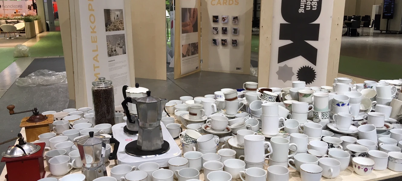 Sammen med designer og multikunster Rune Fjord har Designskolen Kolding dækket et gigantisk kaffebord op med 1000 genbrugskopper, kaffemøller og -kander. Over en kop friskbrygget kaffe har de mange tusinde besøgende mulighed for at tage en dialog med en af Designskolen Koldings forskere og udviklere fra skolens LAB for socialt design om, hvordan designtænkning og designmetoder kan hjælpe dig i dit arbejde og bidrage til bedre velfærdsløsninger.