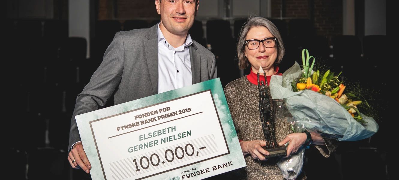 Det var en meget ydmyg og meget glad rektor for Designskolen Kolding, Elsebeth Gerner Nielsen, der onsdag fik overrakt "Fonden for Fynske Bank Prisen" og 100.000 kroner i overværelse af 300 tilskuere til Fynske Banks aktionærmøde i Fredericia Idrætscenter: