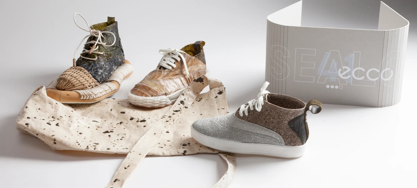 Tang, siv og makulerede læderrester. Ikoniske møbelklassikere. Bølgeskvulp og mågeskrig langs de danske kyster. Og en verden presset på ressourcer. Det er nogle af elementerne, der indgår i et designprojekt, hvor en gruppe studerende fra Designskolen i Kolding har samarbejdet med ECCO Sko A/S om udviklingen af et koncept til en skokollektion, ECCO SEALO, der sætter nye standarder for bæredygtighed i produktionen af kvalitetssko. Præmissen for designet har været en bæredygtig kollektion med inspiration fra dansk tradition og kultur.