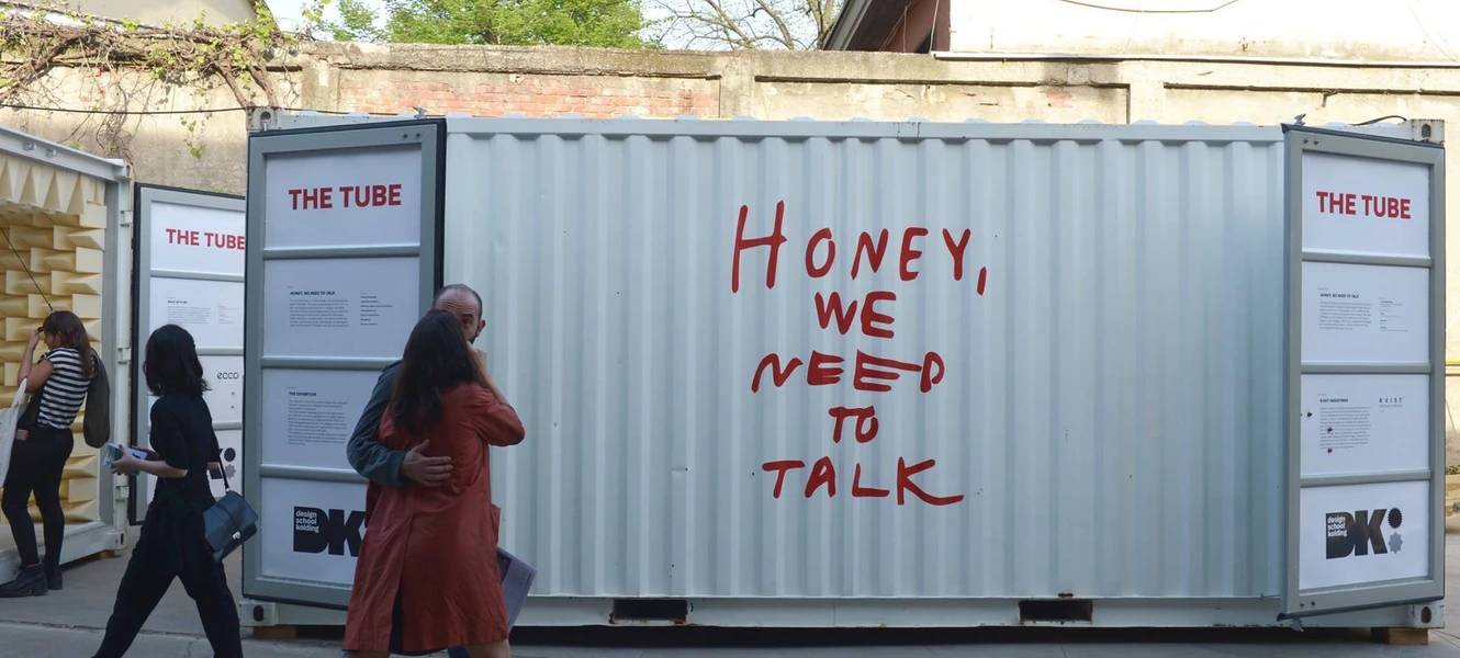 Temaet for The tube er i år bordet, og Sidsel Søgaard Spas titel ’Honey, we need to talk’ er ikke bare blevet overskriften for hele udstillingen, den står også bøjet i neon i containeren, som danner ramme og fungerer som ”war-room” for udstillingen.