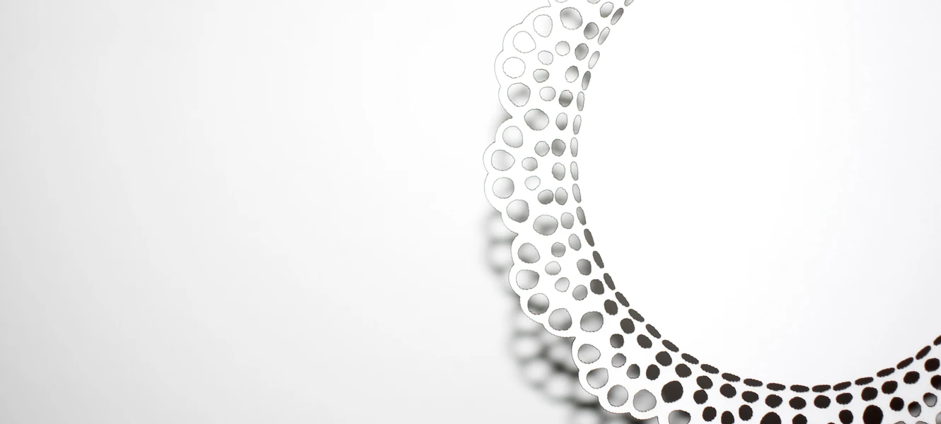 Kniplingerne er skåret i linoleum, et materiale Camilla Skøtt ikke har arbejdet med før, men som hun er blevet meget begejstret for at arbejde med.