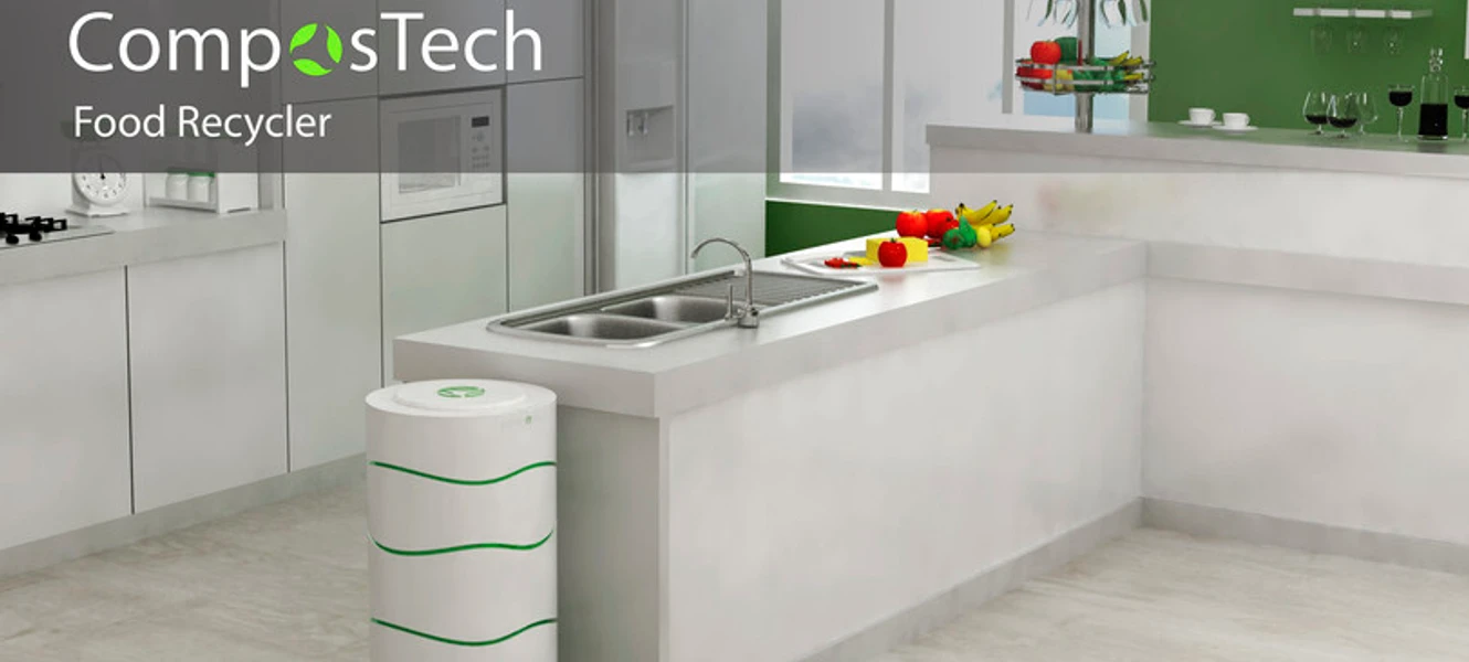Designet af ComposTech er gennemtænkt. En elegant hvid cylinder med en svungen, organisk grøn streg, der ligner et stykke brugsdesign, skabt til at forskønne hjemmet. Bag den diskrete overflade gemmer sig et stykke hard core industriel design, hvor overfloden fra de privilegeredes husholdninger forvandles til kompost. Der er indtænkt kulfibre for at minimere lugtgener, og de mange niveauer fra top til bund baner vej fra den kasserede mad til den færdige kompost, der kan bruges som gødning i hus og have. Alt sammen på kun 24 timer.