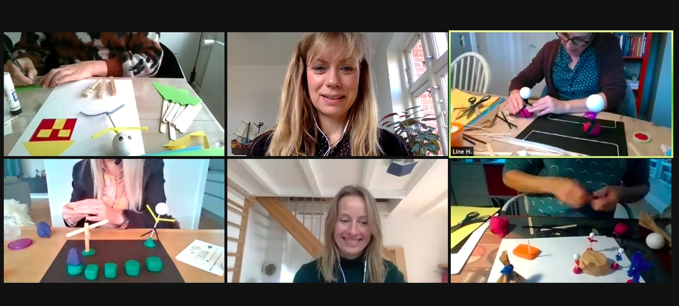 - Dét at kursusdeltagerne kastes ud i øvelser, hvor de skal bruge kroppen og have gang i hænderne for at skabe selv, giver et meget stort engagement og en følelse af nærvær, selvom vi sidder på afstand af hinanden, fortællere Kerstin Bro Egelund.