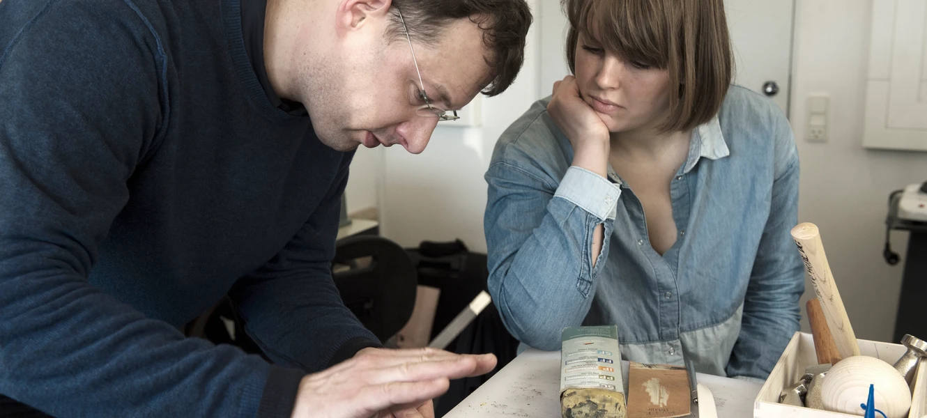 Anerkendt tysk taske-designer er på lynvisit og skal lære de studerende på Accessory-linjen at arbejde med læder