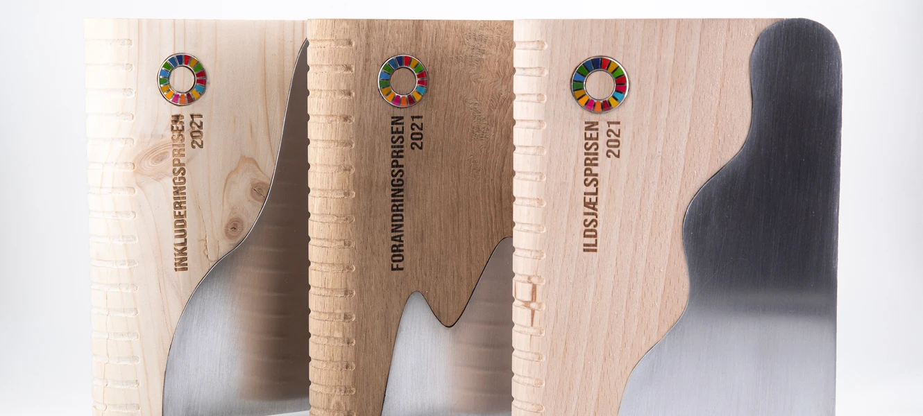 Tre træstykker, der var dømt til at ende deres dage i "småt brændbart", har i stedet fået lidt af et glorværdigt efterliv. De små stykker træ af eg, bøg og ask udgør nemlig kernen i de tre Verdensmålspriser, skabt af tre industrielt designstuderende på Designskolen Kolding.